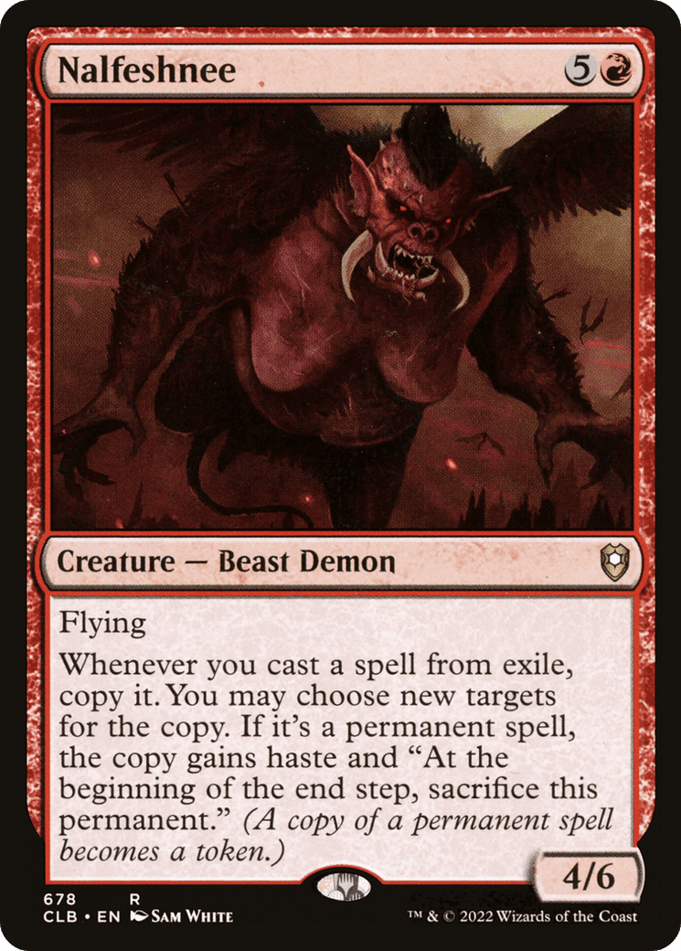Whenever you cast a spell from exile, copy it. You may choose new targets for the copy. If it’s a permanent spell, the copy gains haste and “At the beginning of the end step, sacrifice this permanent.” (A copy of a permanent spell becomes a token.)