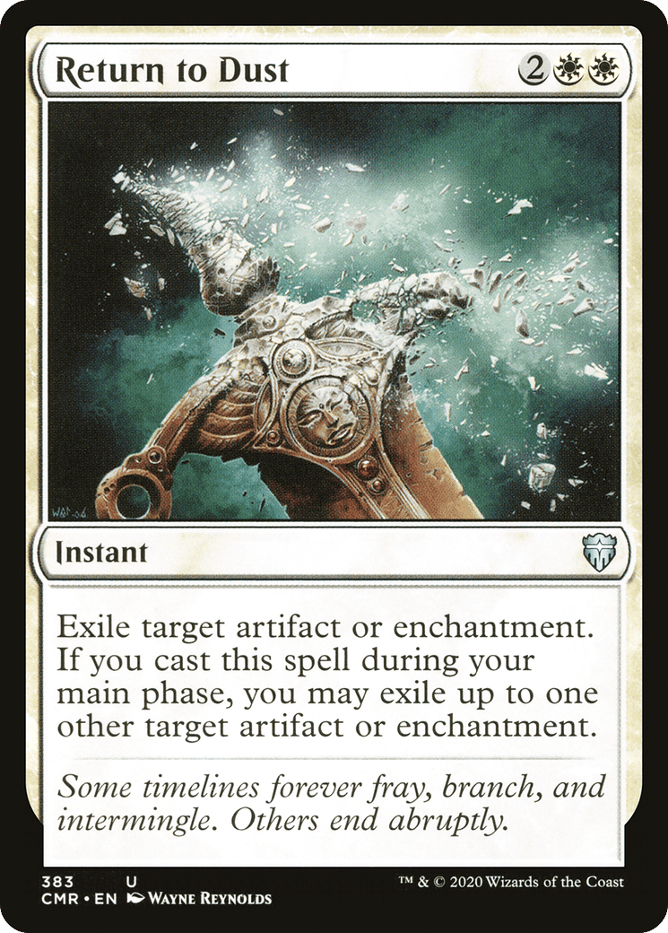 Exile target artifact or enchantment. If you cast this spell during your main phase, you may exile up to one other target artifact or enchantment.