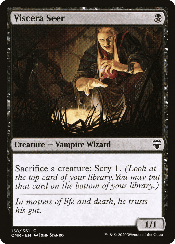Sacrifice a creature: Scry 1. (Look at the top card of your library. You may put that card on the bottom.)
