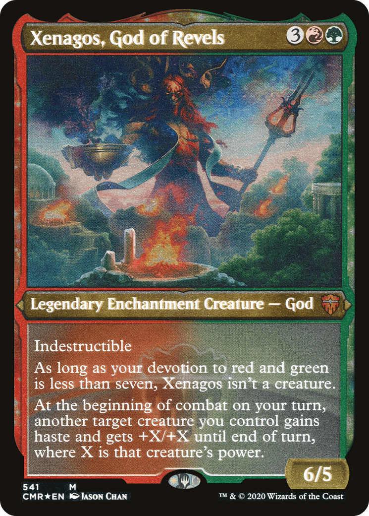 As long as your devotion to red and green is less than seven, Xenagos isn’t a creature.