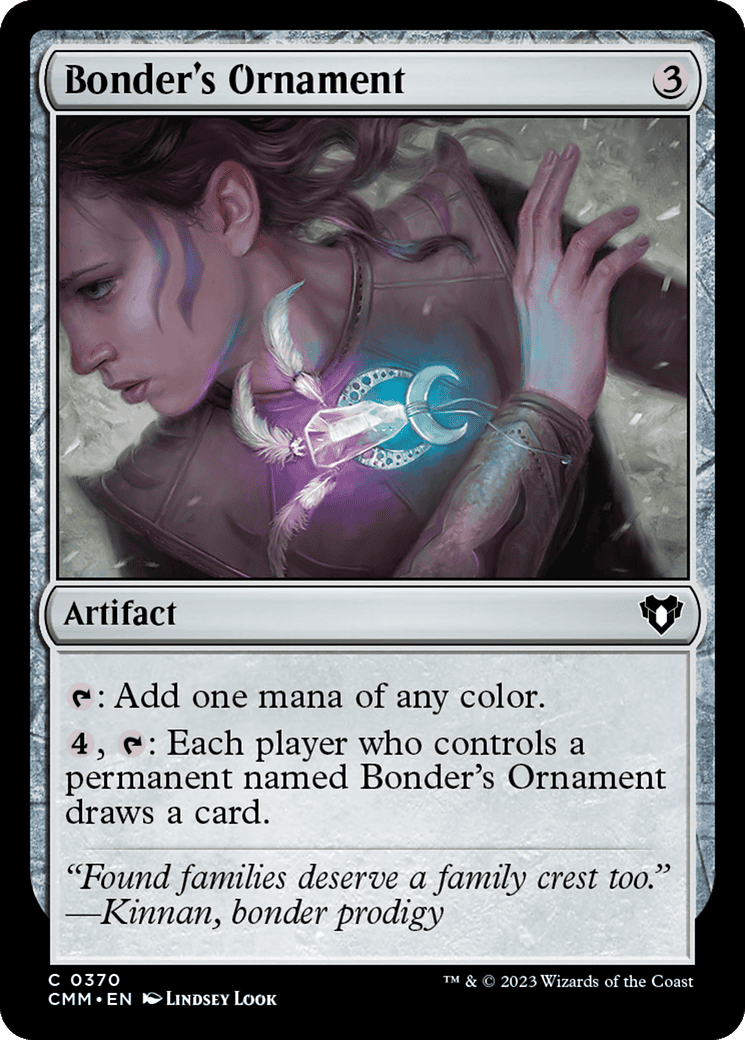 {4}, {T}: Each player who controls a permanent named Bonder’s Ornament draws a card.