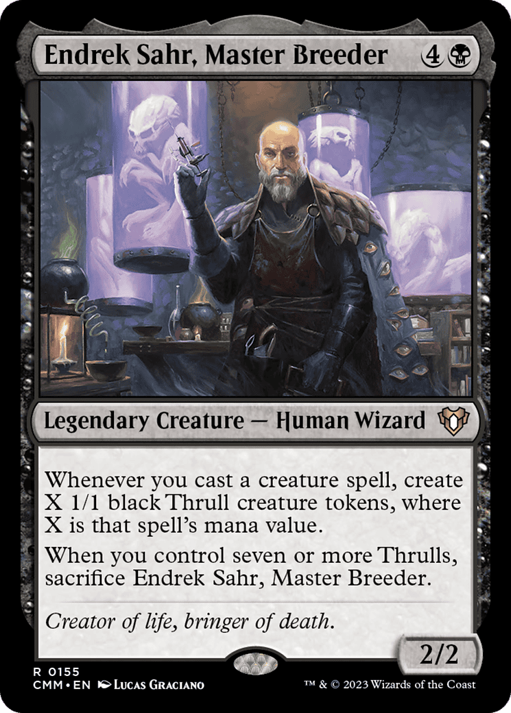 Whenever you cast a creature spell, create X 1/1 black Thrull creature tokens, where X is that spell’s mana value.