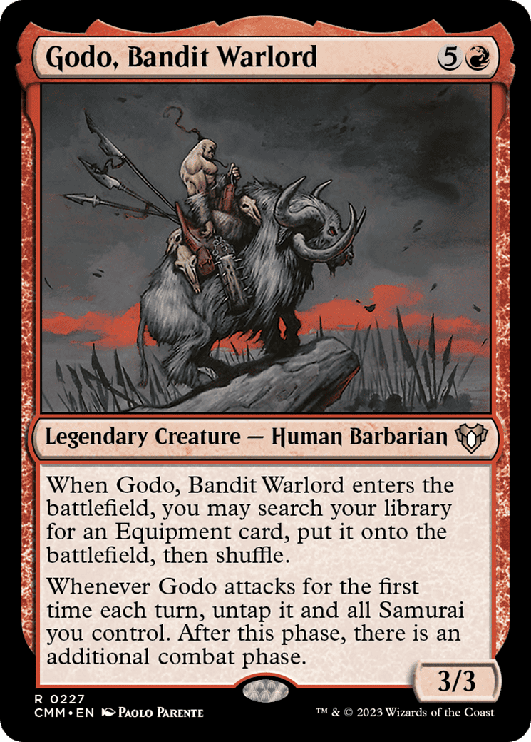 When Godo enters, you may search your library for an Equipment card, put it onto the battlefield, then shuffle.