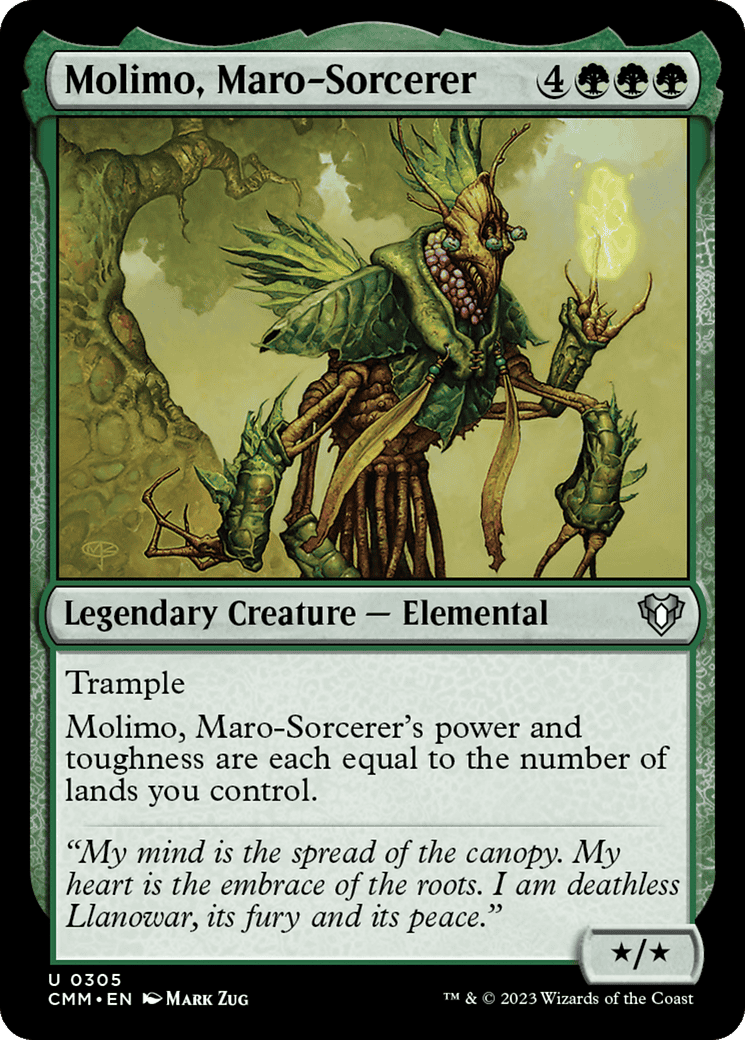 Molimo’s power and toughness are each equal to the number of lands you control.