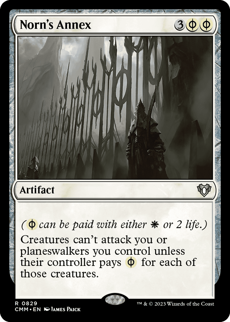 ({W/P} can be paid with either {W} or 2 life.) Creatures can’t attack you or planeswalkers you control unless their controller pays {W/P} for each of those creatures.