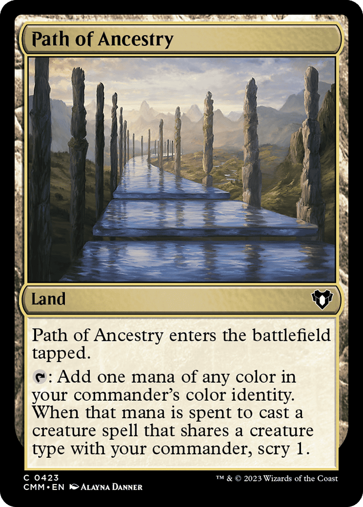 {T}: Add one mana of any color in your commander’s color identity. When that mana is spent to cast a creature spell that shares a creature type with your commander, scry 1. (Look at the top card of your library. You may put that c