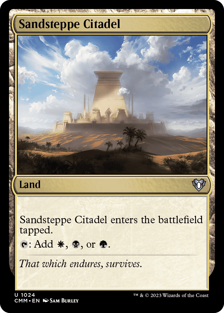 This land enters tapped. {T}: Add {W}, {B}, or {G}.