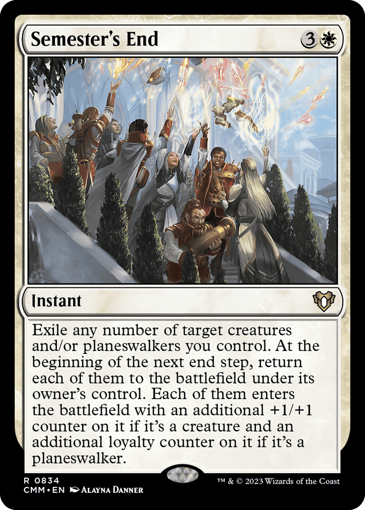 Exile any number of target creatures and/or planeswalkers you control. At the beginning of the next end step, return each of them to the battlefield under its owner’s control. Each of them enters with an additional +1/+1 counter on it if it’s a creature a