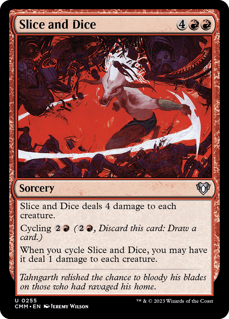 Slice and Dice deals 4 damage to each creature.