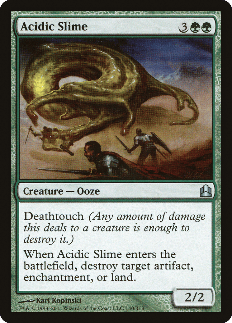 Deathtouch (Any amount of damage this deals to a creature is enough to destroy it.) When this creature enters, destroy target artifact, enchantment, or land.