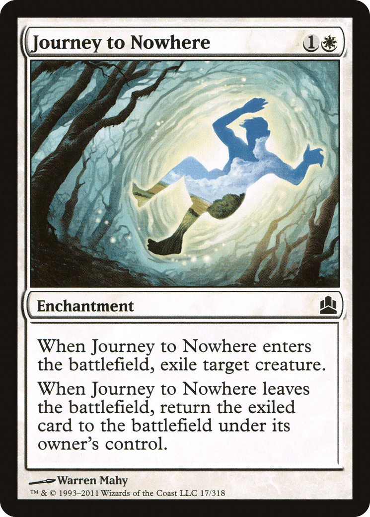 When this enchantment enters, exile target creature. When this enchantment leaves the battlefield, return the exiled card to the battlefield under its owner’s control.
