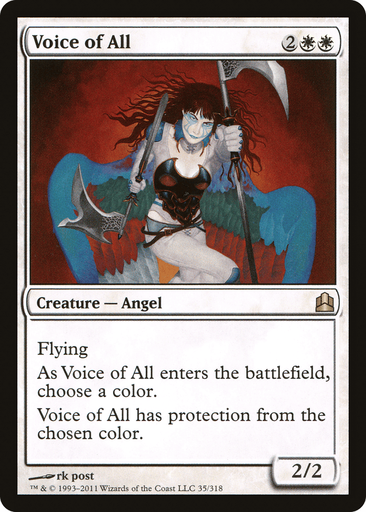 Flying As this creature enters, choose a color. This creature has protection from the chosen color.