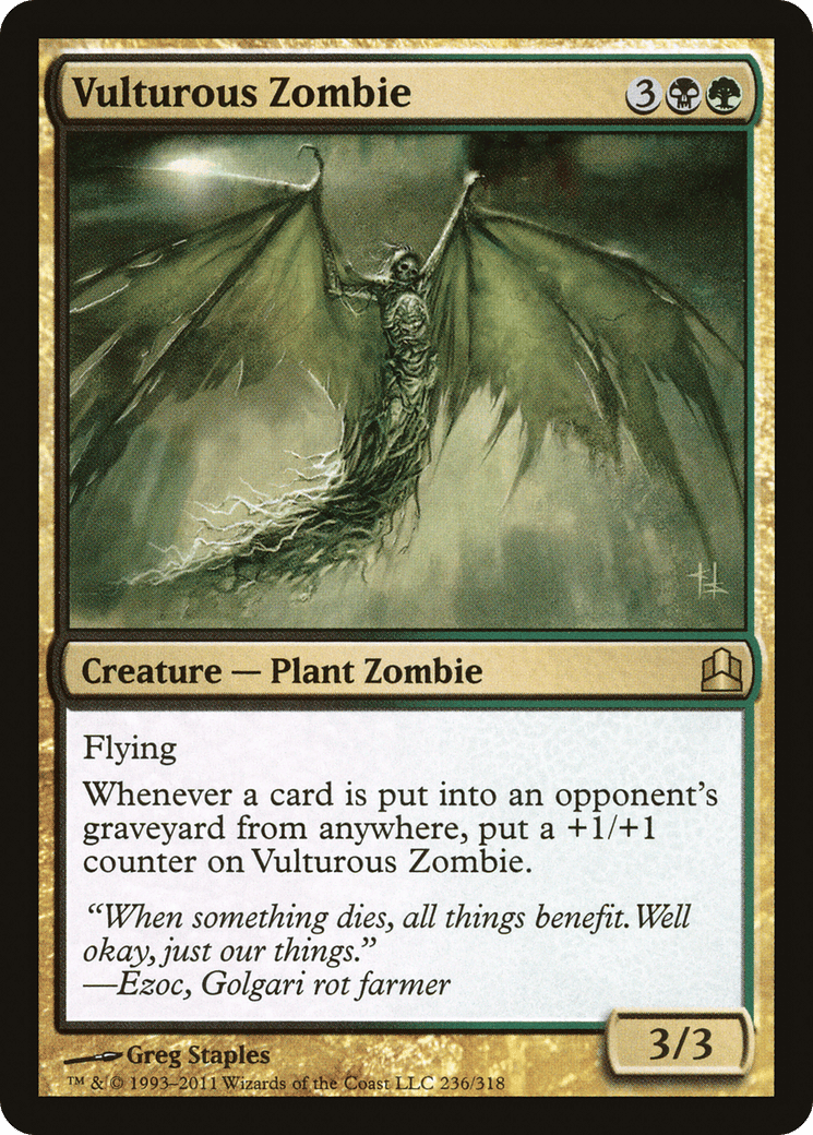 Whenever a card is put into an opponent’s graveyard from anywhere, put a +1/+1 counter on this creature.