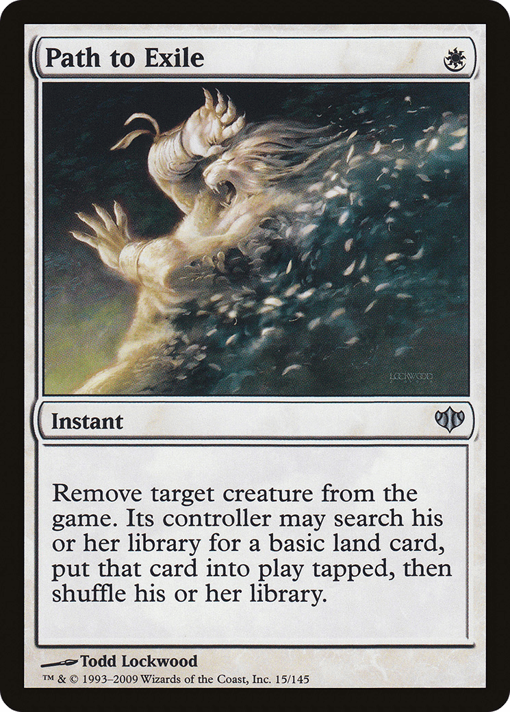 Exile target creature. Its controller may search their library for a basic land card, put that card onto the battlefield tapped, then shuffle.