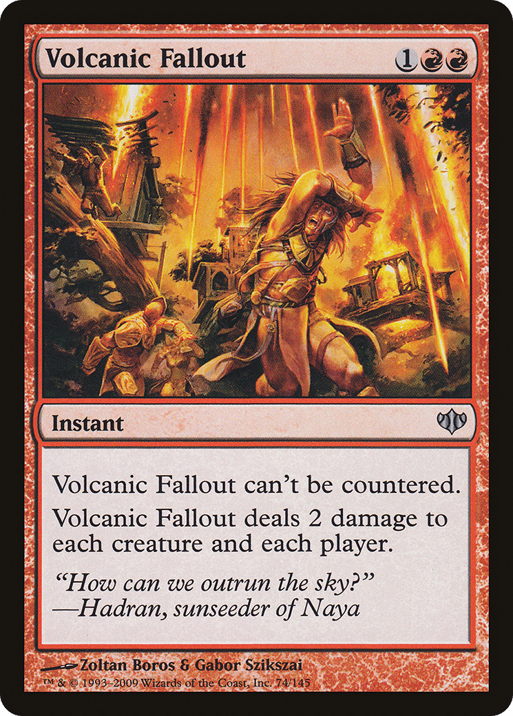 This spell can’t be countered. Volcanic Fallout deals 2 damage to each creature and each player.