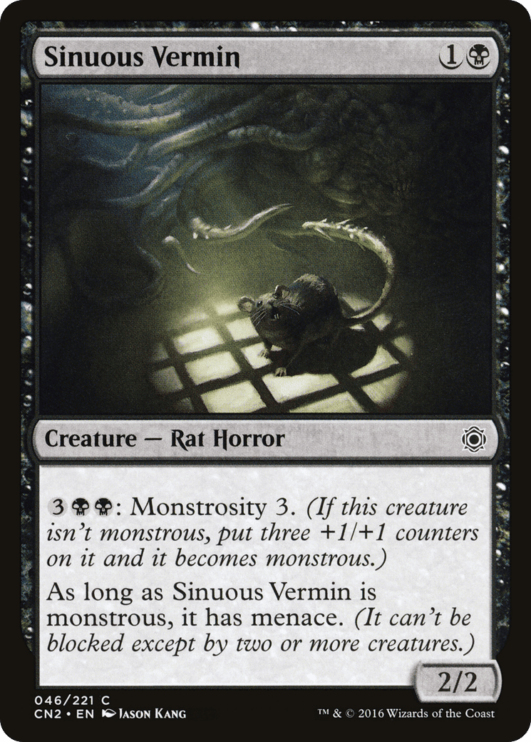 {3}{B}{B}: Monstrosity 3. (If this creature isn’t monstrous, put three +1/+1 counters on it and it becomes monstrous.)
