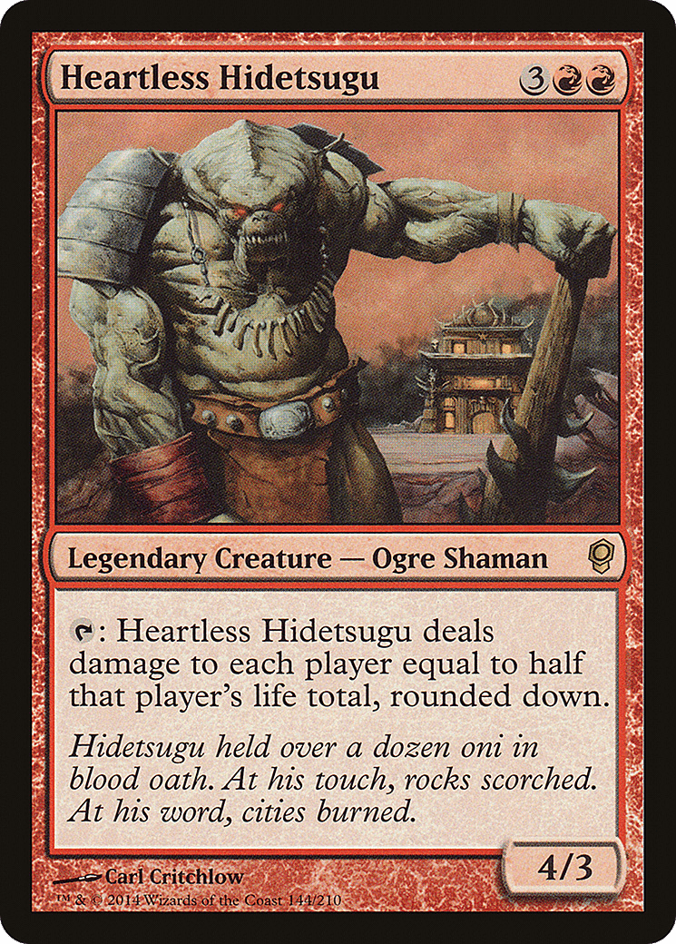 {T}: Heartless Hidetsugu deals damage to each player equal to half that player’s life total, rounded down.
