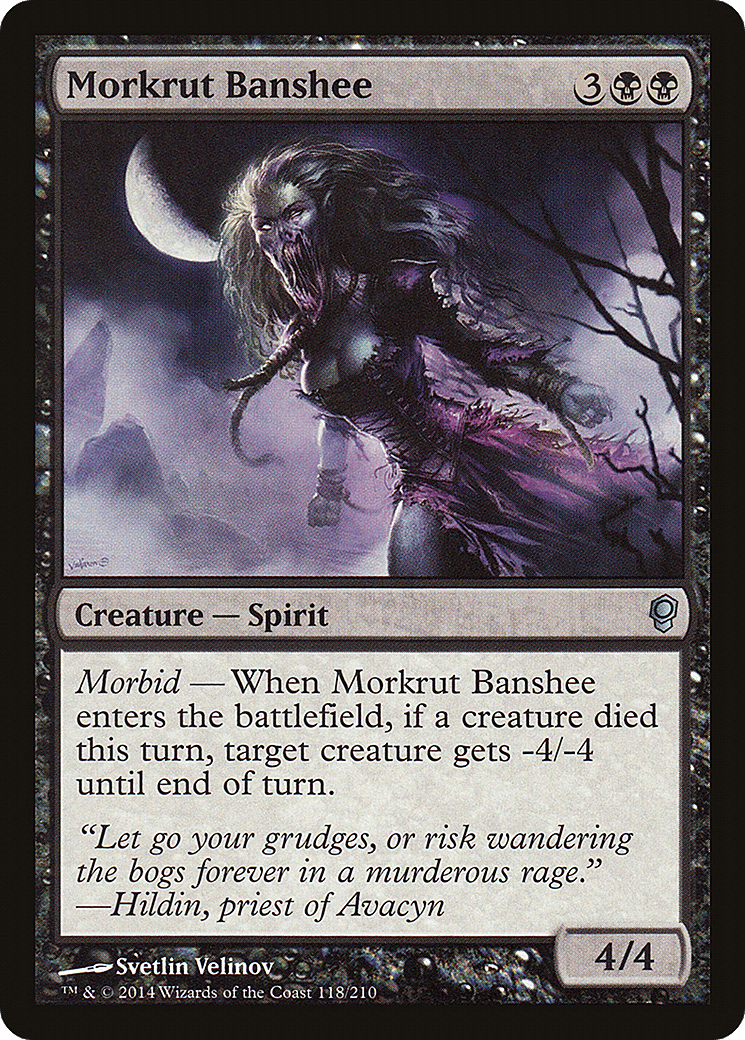 Morbid – When this creature enters, if a creature died this turn, target creature gets -4/-4 until end of turn.