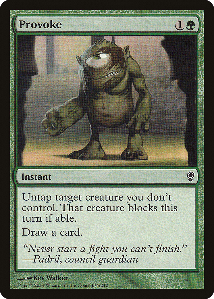 Untap target creature you don’t control. That creature blocks this turn if able. Draw a card.