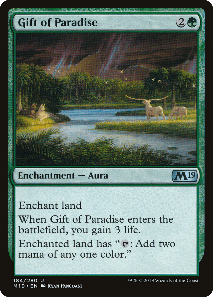 Enchant land When this Aura enters, you gain 3 life. Enchanted land has “{T}: Add two mana of any one color.”