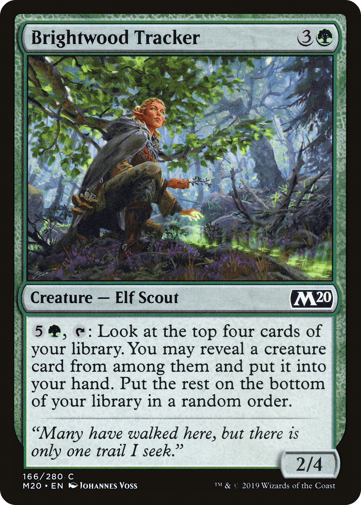 {5}{G}, {T}: Look at the top four cards of your library. You may reveal a creature card from among them and put it into your hand. Put the rest on the bottom of your library in a random order.