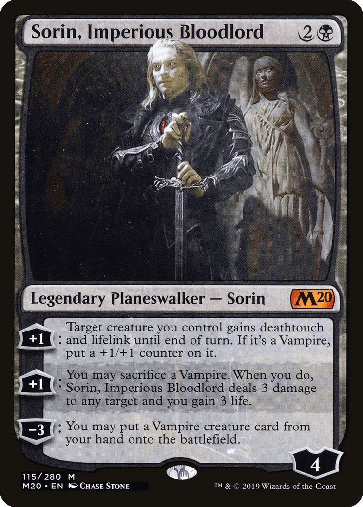 +1: You may sacrifice a Vampire. When you do, Sorin deals 3 damage to any target and you gain 3 life.