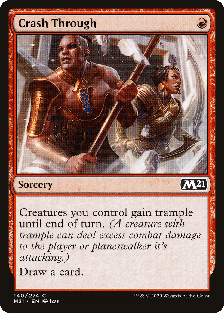 Creatures you control gain trample until end of turn. (Each of those creature can deal excess combat damage to the player or planeswalker it’s attacking.) Draw a card.