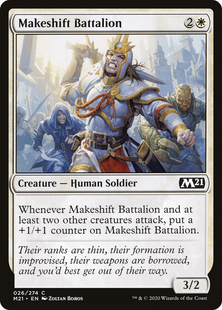Battalion – Whenever this creature and at least two other creatures attack, put a +1/+1 counter on this creature.