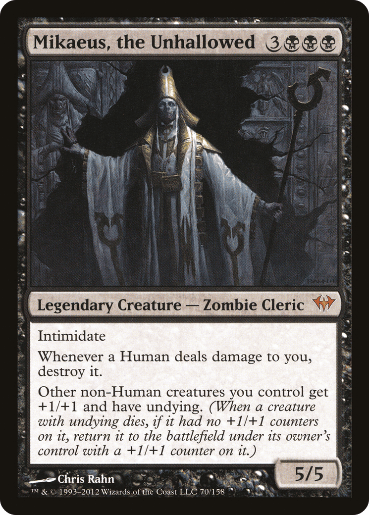 Other non-Human creatures you control get +1/+1 and have undying. (When a creature with