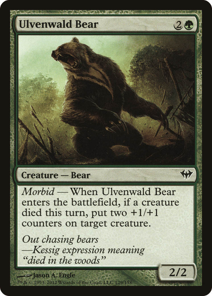 Morbid – When this creature enters, if a creature died this turn, put two +1/+1 counters on target creature.