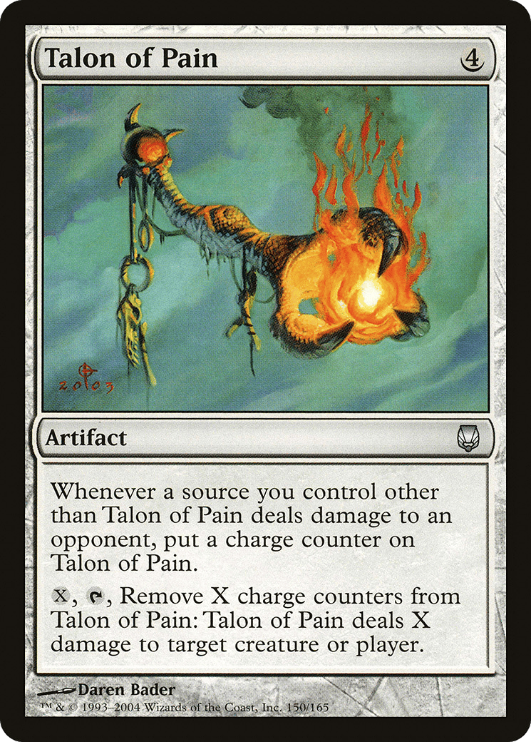 {X}, {T}, Remove X charge counters from this artifact: It deals X damage to any target.