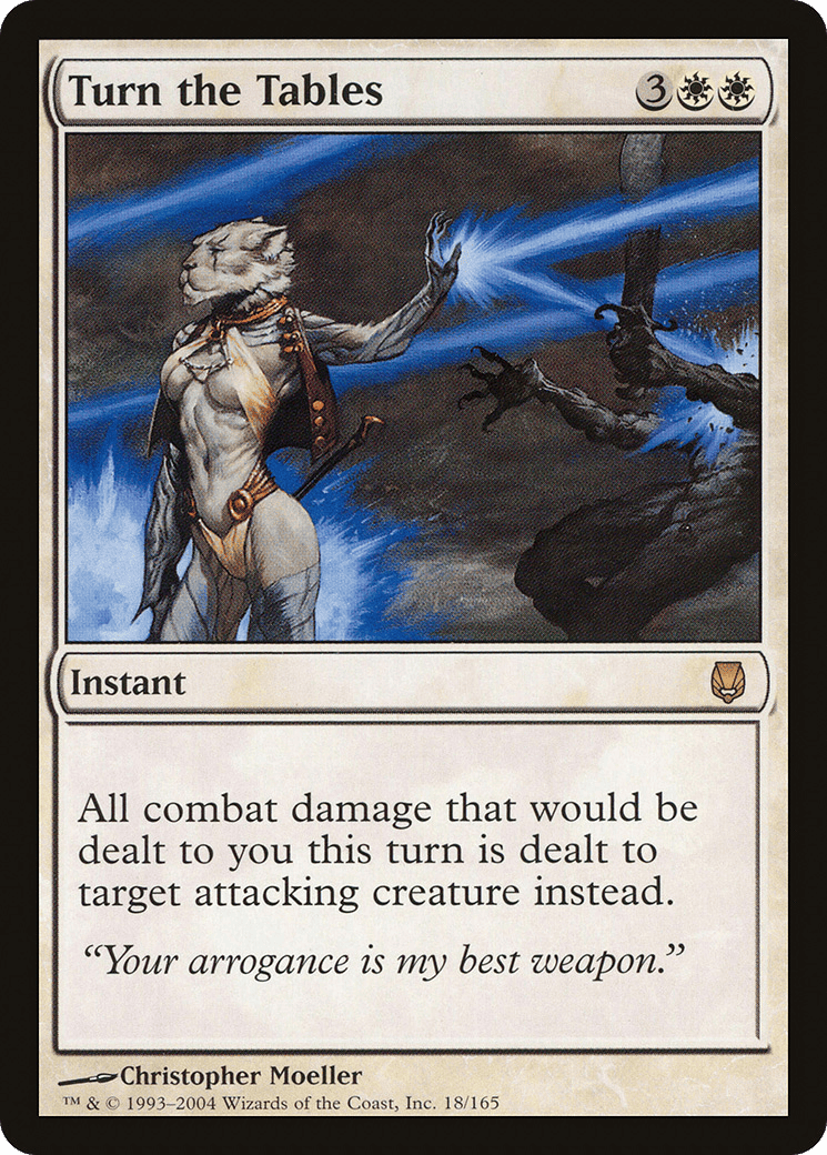 All combat damage that would be dealt to you this turn is dealt to target attacking creature instead.