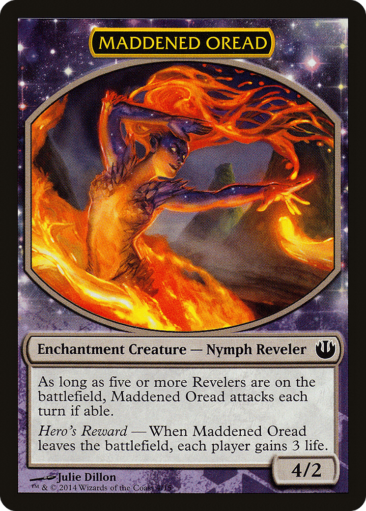 Hero’s Reward – When Maddened Oread leaves the battlefield, each player gains 3 life.