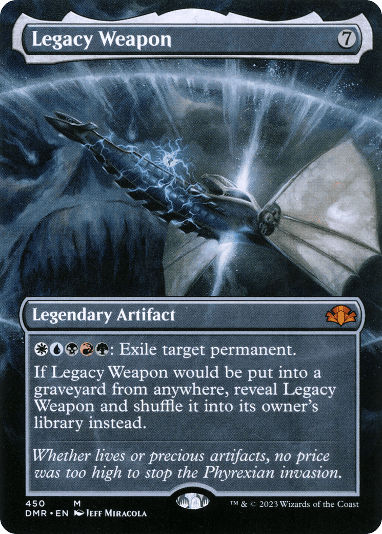If Legacy Weapon would be put into a graveyard from anywhere, reveal Legacy Weapon and shuffle it into its owner’s library instead.