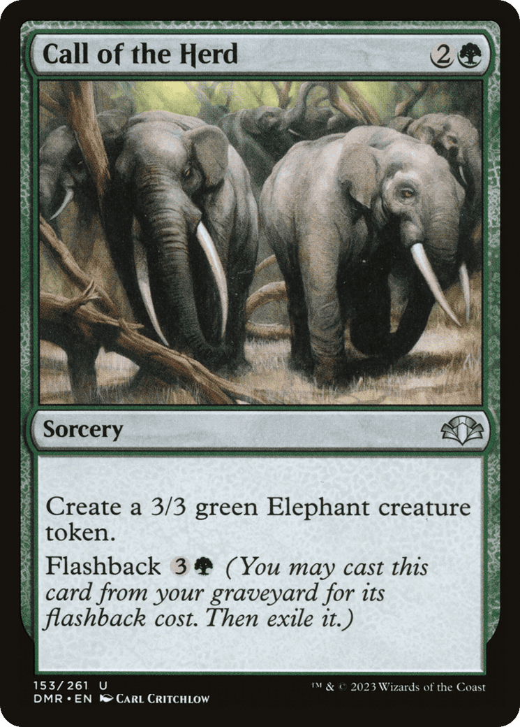 Create a 3/3 green Elephant creature token. Flashback {3}{G} (You may cast this card from your graveyard for its flashback cost. Then exile it.)