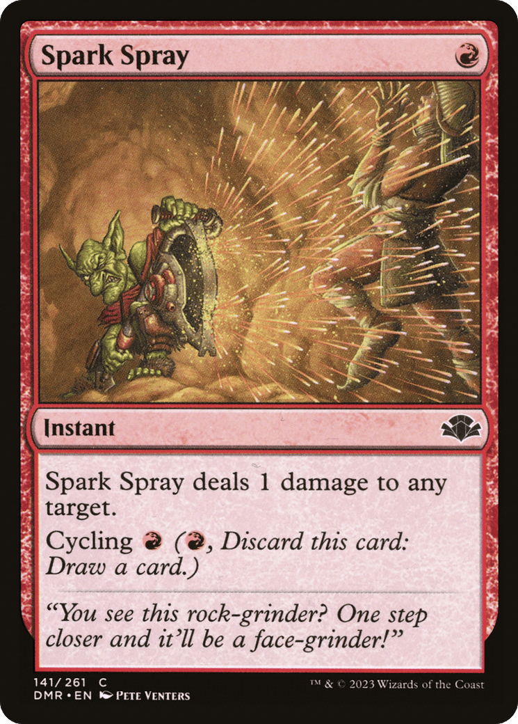 Spark Spray deals 1 damage to any target. Cycling {R} ({R}, Discard this card: Draw a card.)