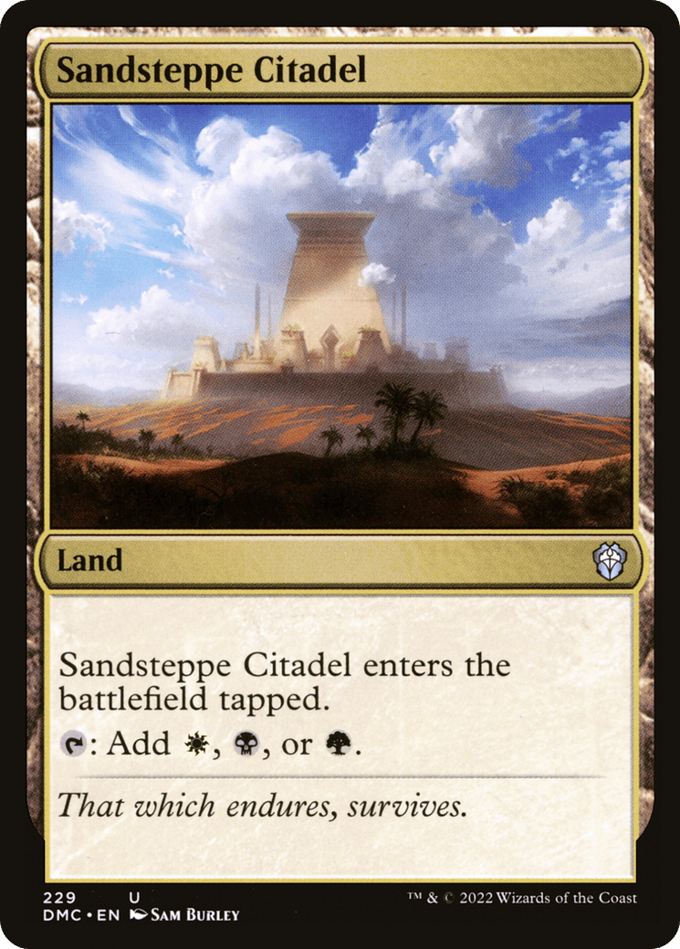 This land enters tapped. {T}: Add {W}, {B}, or {G}.
