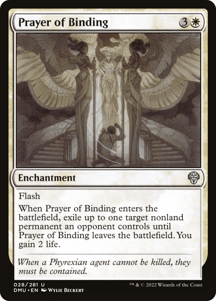 When this enchantment enters, exile up to one target nonland permanent an opponent controls until this enchantment leaves the battlefield. You gain 2 life.