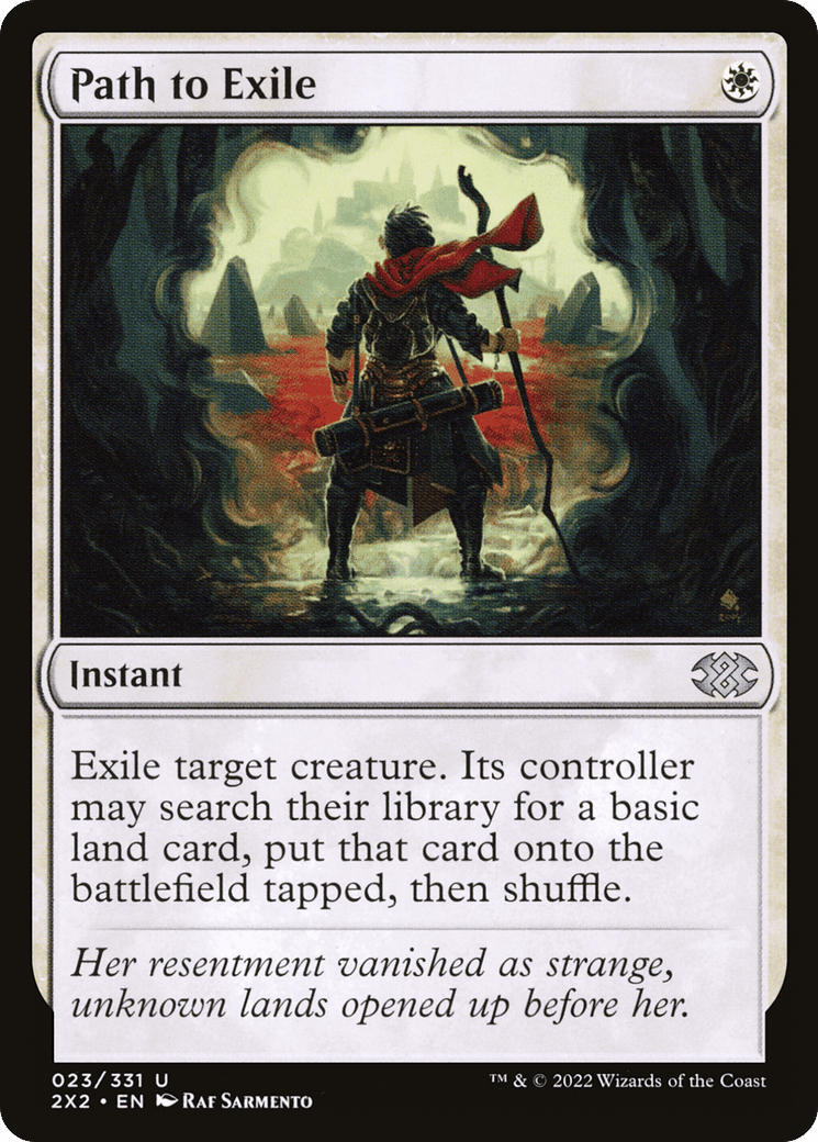 Exile target creature. Its controller may search their library for a basic land card, put that card onto the battlefield tapped, then shuffle.