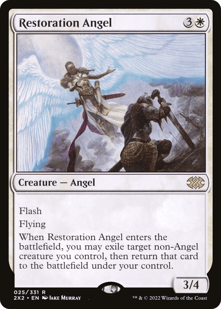 Flash Flying When this creature enters, you may exile target non-Angel creature you control, then return that card to the battlefield under your control.