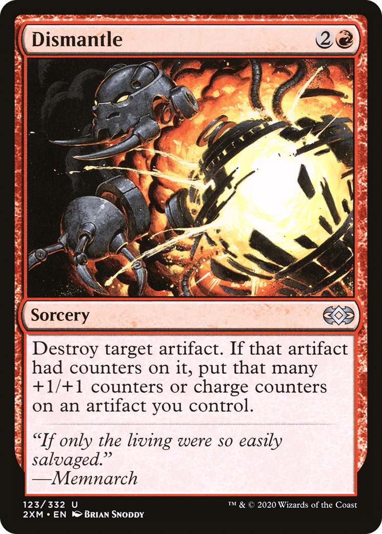 Destroy target artifact. If that artifact had counters on it, put that many +1/+1 counters or charge counters on an artifact you control.