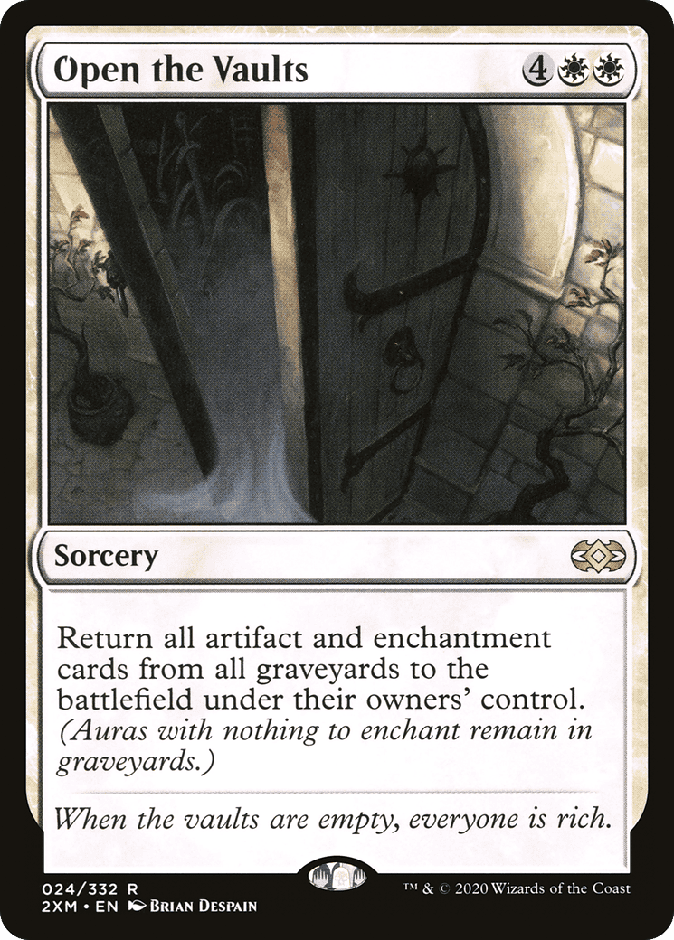 Return all artifact and enchantment cards from all graveyards to the battlefield under their owners’ control. (Auras with nothing to enchant remain in graveyards.)