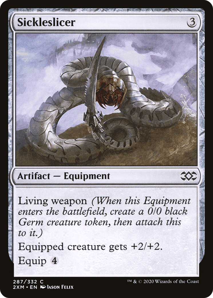 Living weapon (When this Equipment enters, create a 0/0 black Phyrexian Germ creature token, then attach this to it.) Equipped creature gets +2/+2. Equip {4}