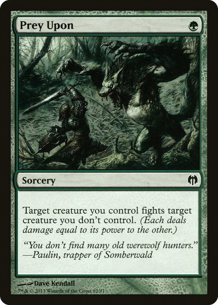 Target creature you control fights target creature you don’t control. (Each deals damage equal to its power to the other.)