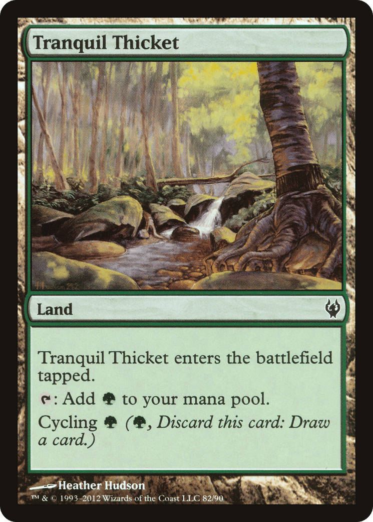 This land enters tapped. {T}: Add {G}. Cycling {G} ({G}, Discard this card: Draw a card.)