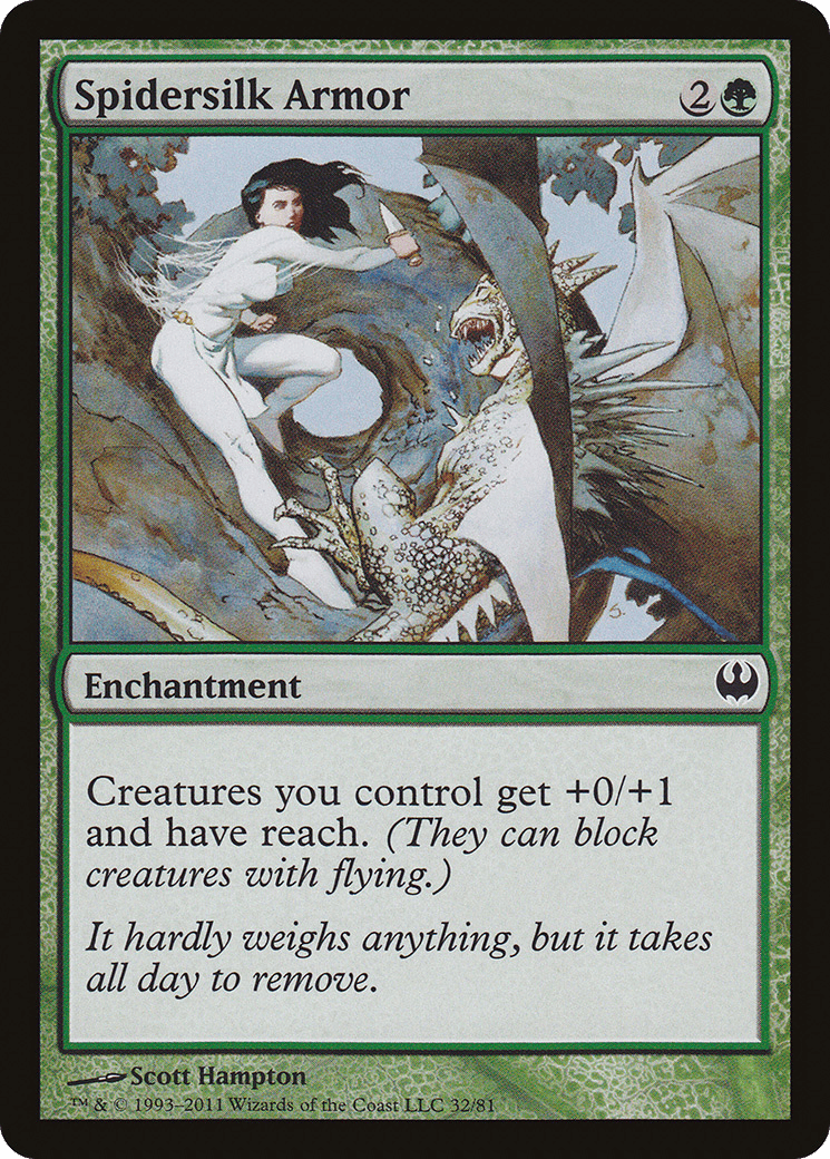 Creatures you control get +0/+1 and have reach. (They can block creatures with flying.)