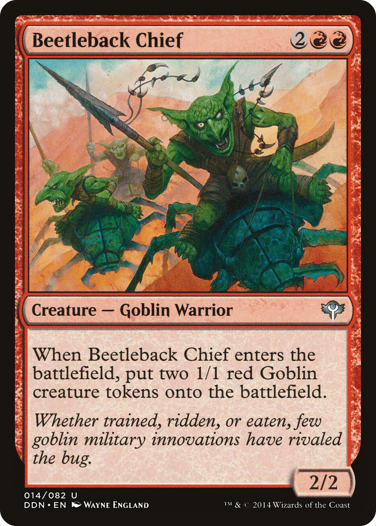 When this creature enters, create two 1/1 red Goblin creature tokens.