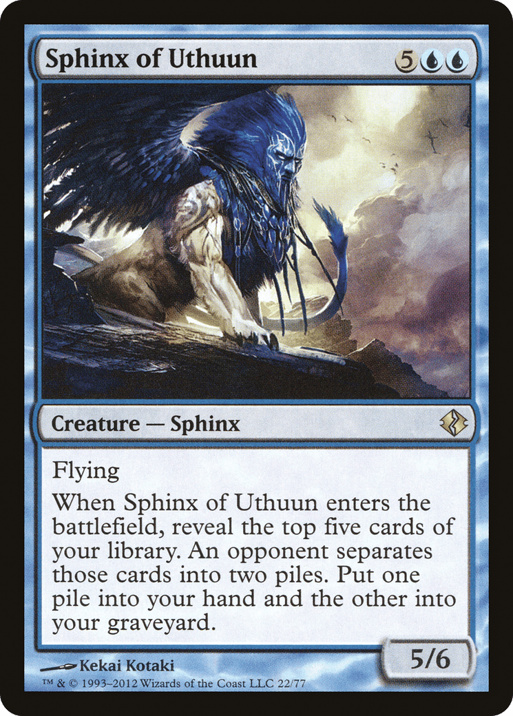 When this creature enters, reveal the top five cards of your library. An opponent separates those cards into two piles. Put one pile into your hand and the other into your graveyard.