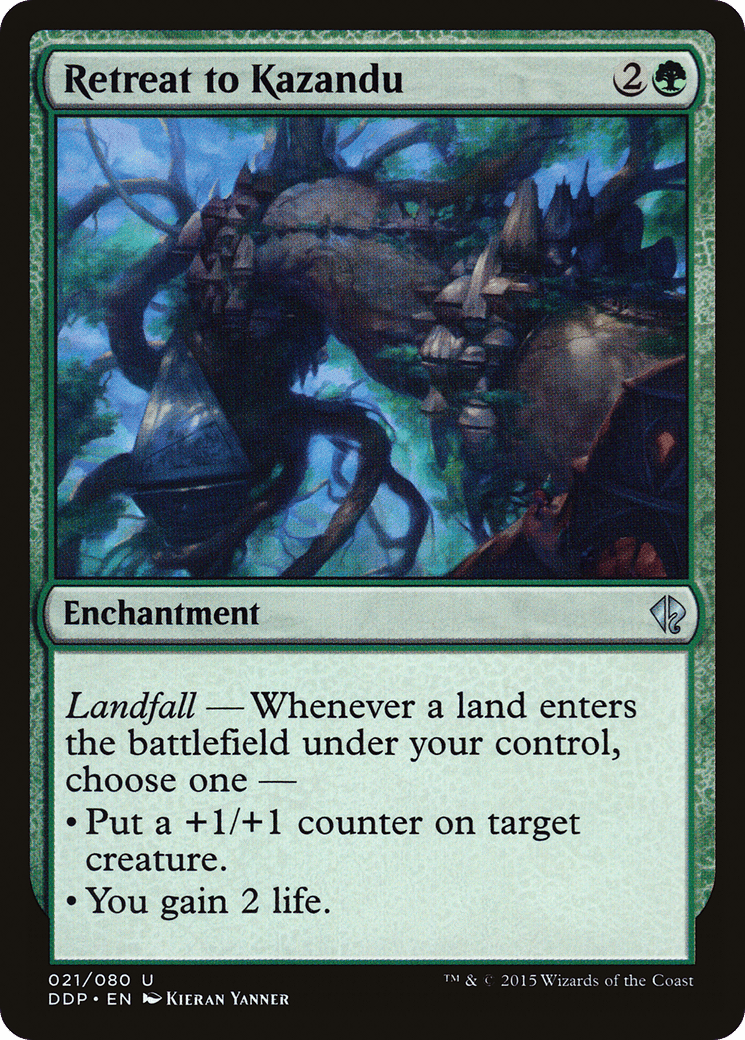 Landfall – Whenever a land you control enters, choose one – – Put a +1/+1 counter on target creature. – You gain 2 life.