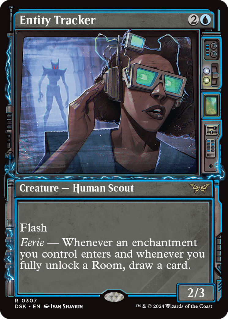 Flash Eerie – Whenever an enchantment you control enters and whenever you fully unlock a Room, draw a card.